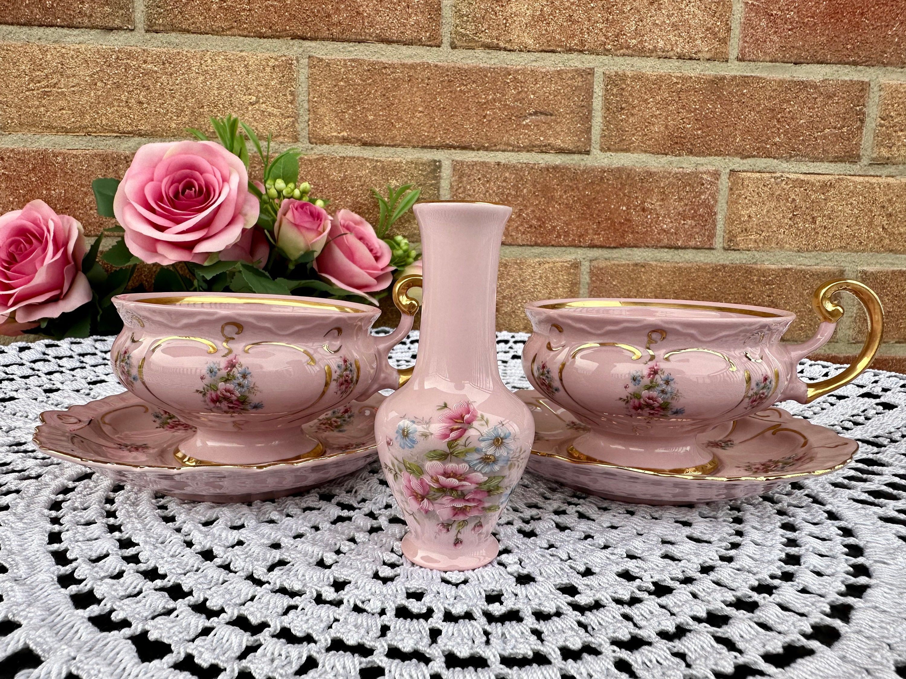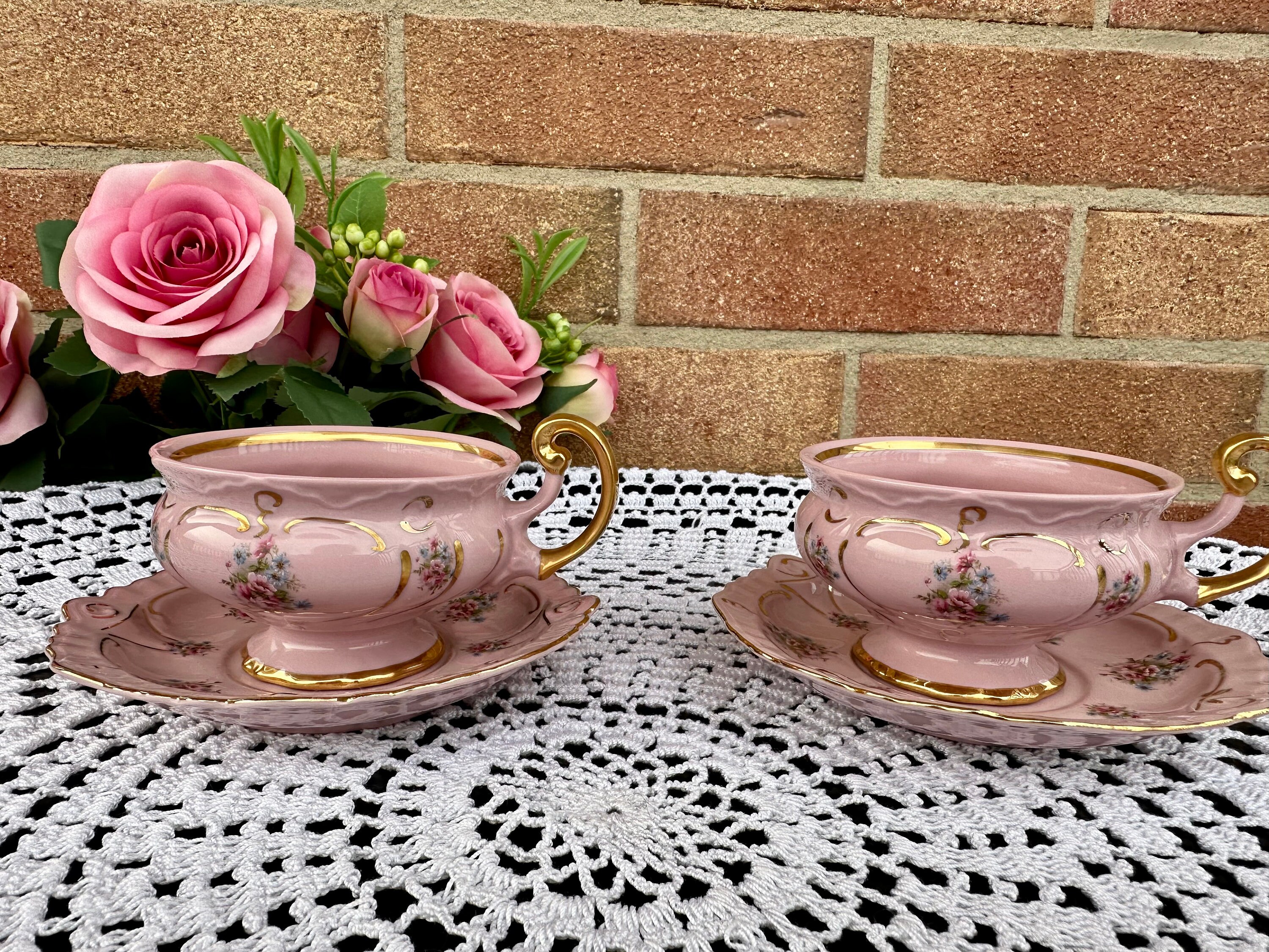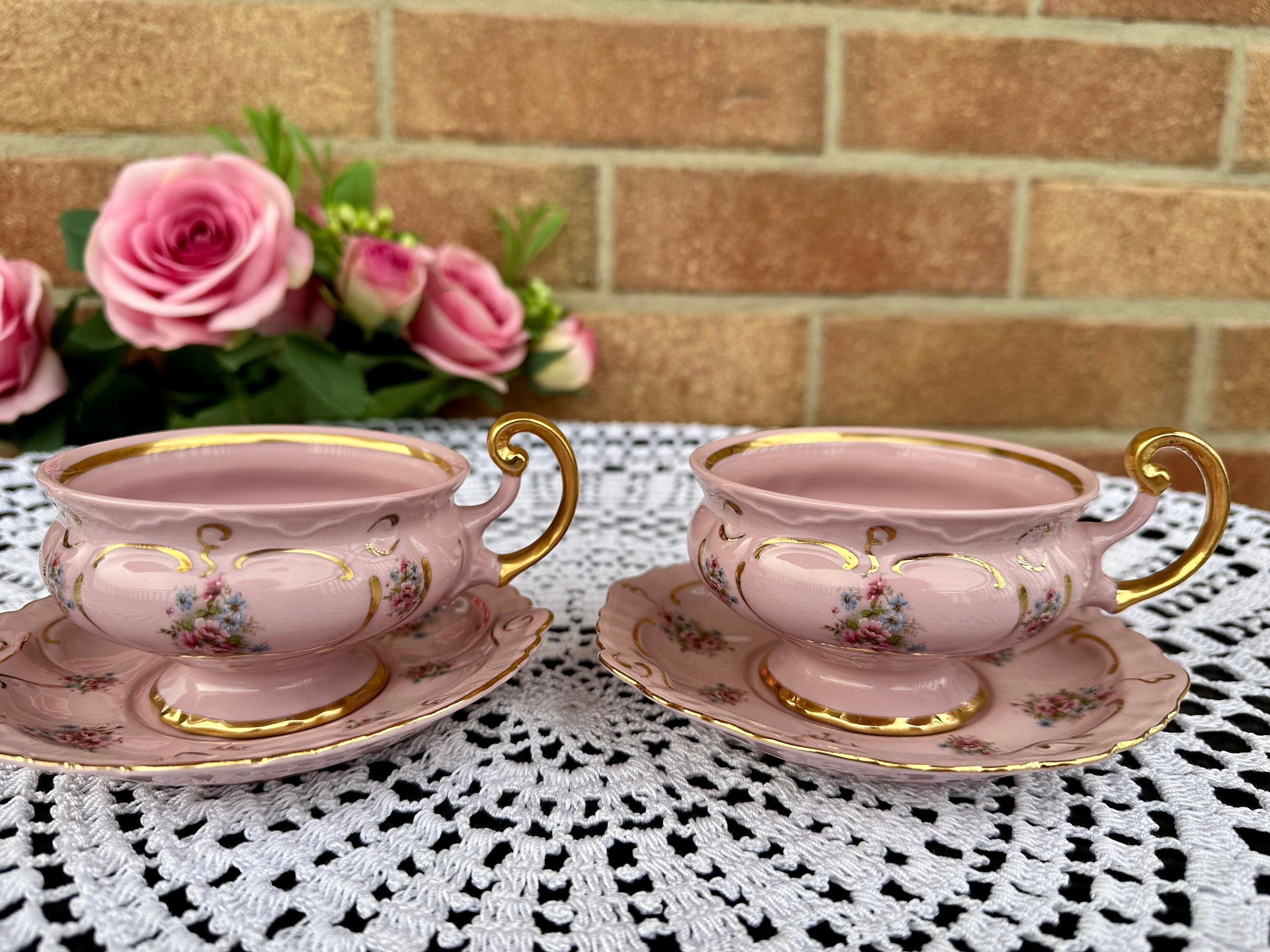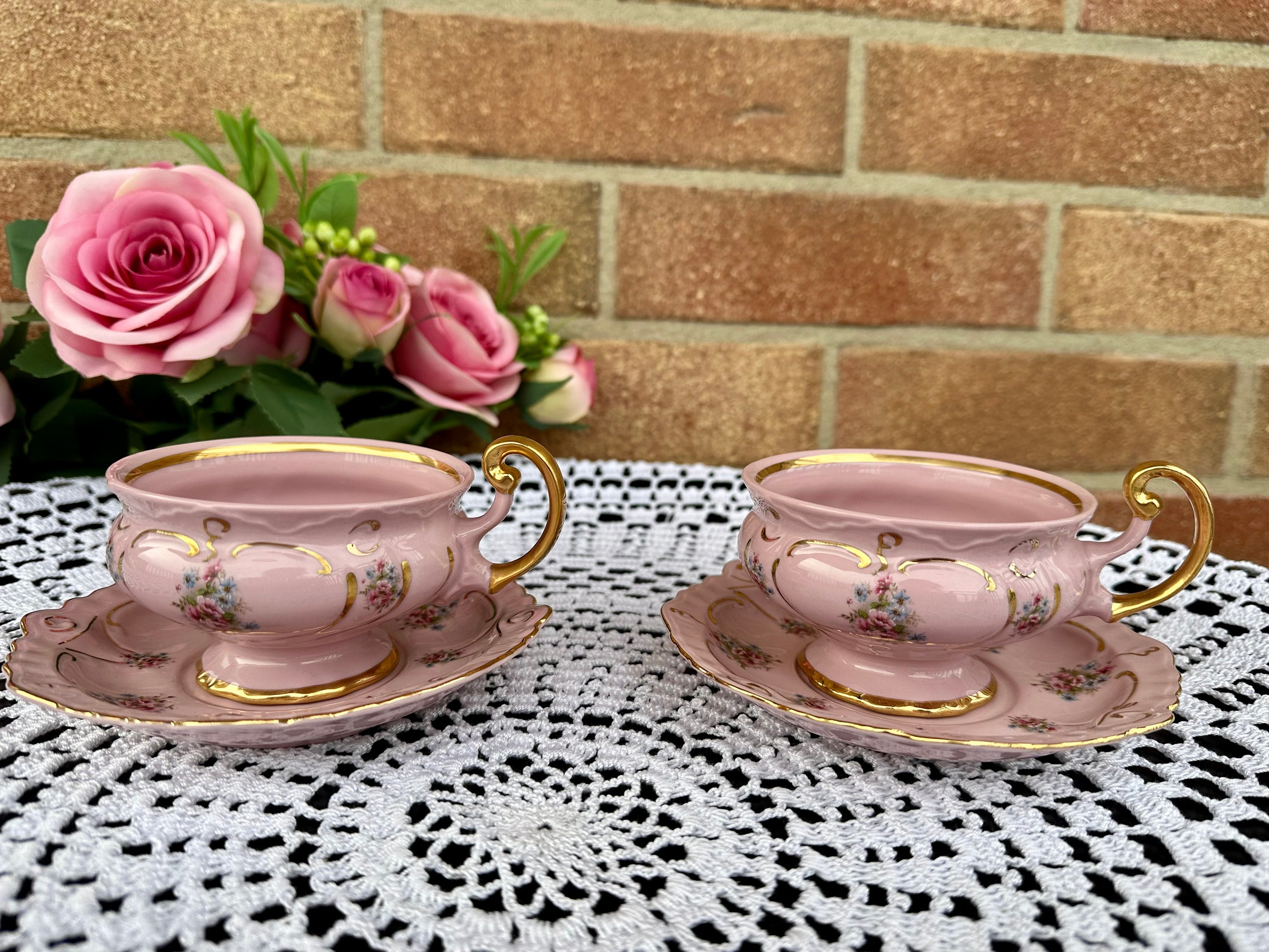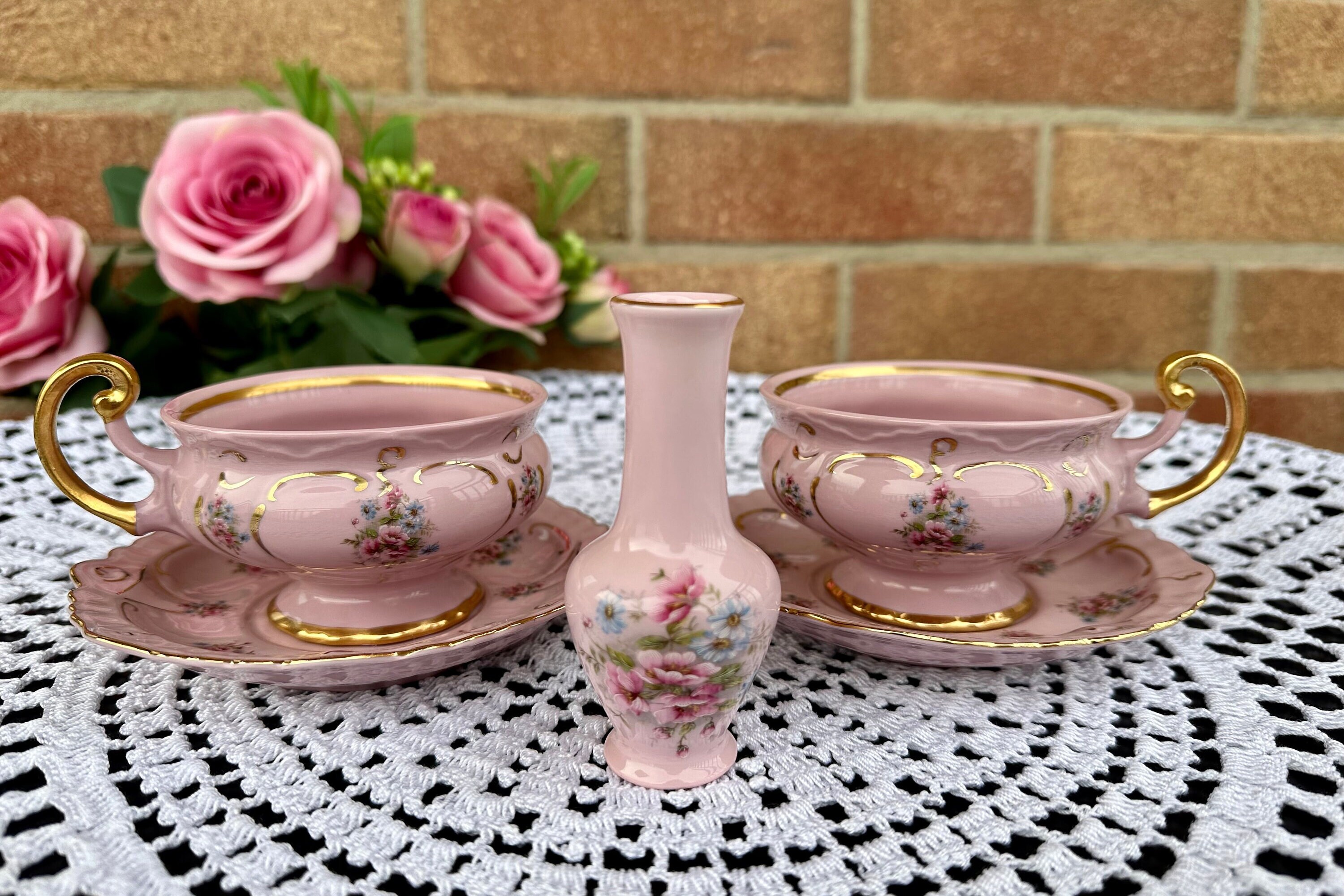 Introducing a beautiful pink porcelain set of two tea or coffee cups decorated with delicate flowers! These cups are made with love and attention to detail and are perfect for making your moments with tea or coffee more enjoyable. With the cups height of 6 cm, it provides just the right amount of your favourite beverage. Together with the 14cm diameter saucers, these cups offer both style and functionality. Add a touch of elegance to your kitchen or delight a loved one with this charming floral cups. You can additionally purchase our charming little vase from our pink porcelain section to go with the cups. Do not use in the dishwasher or microwave!