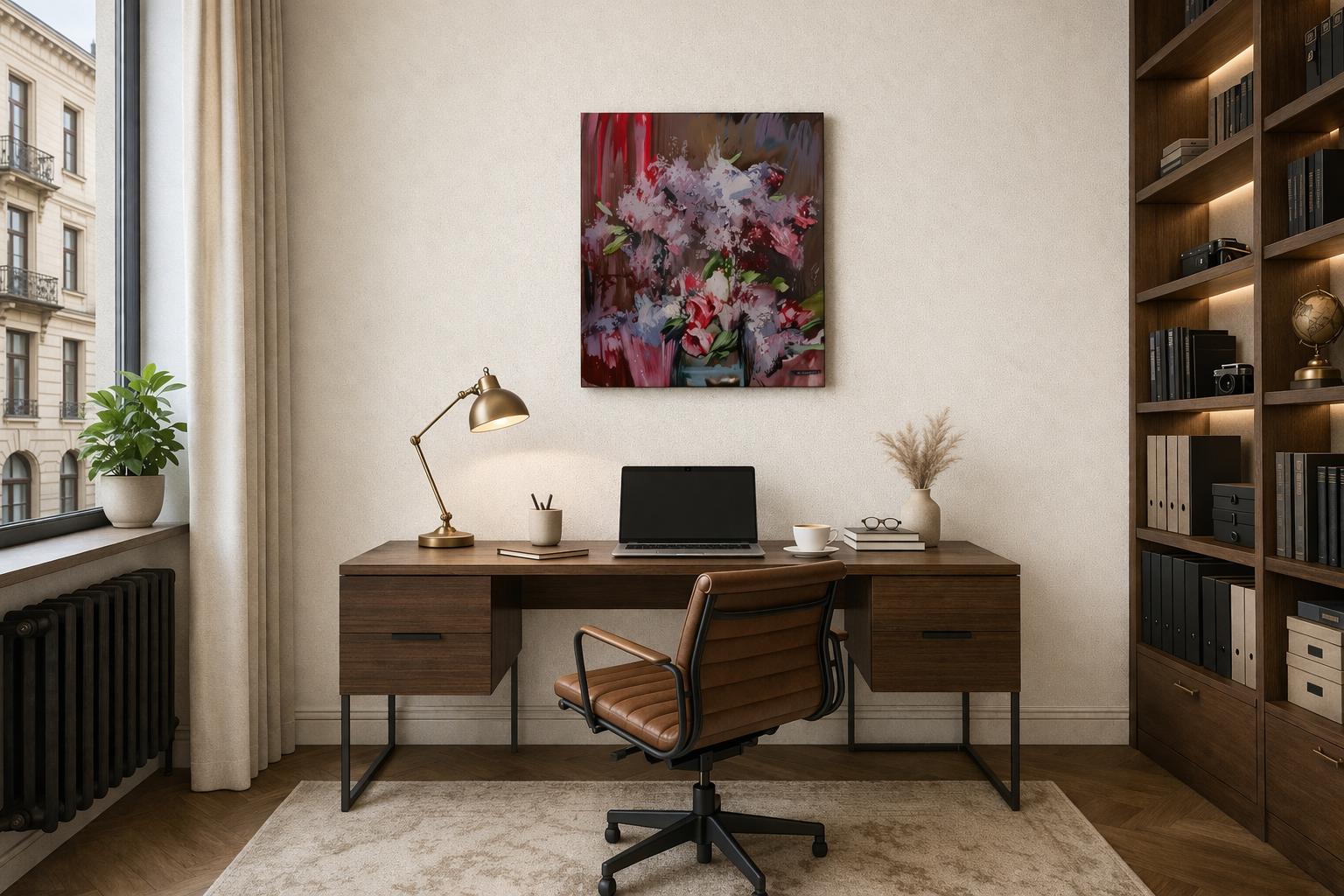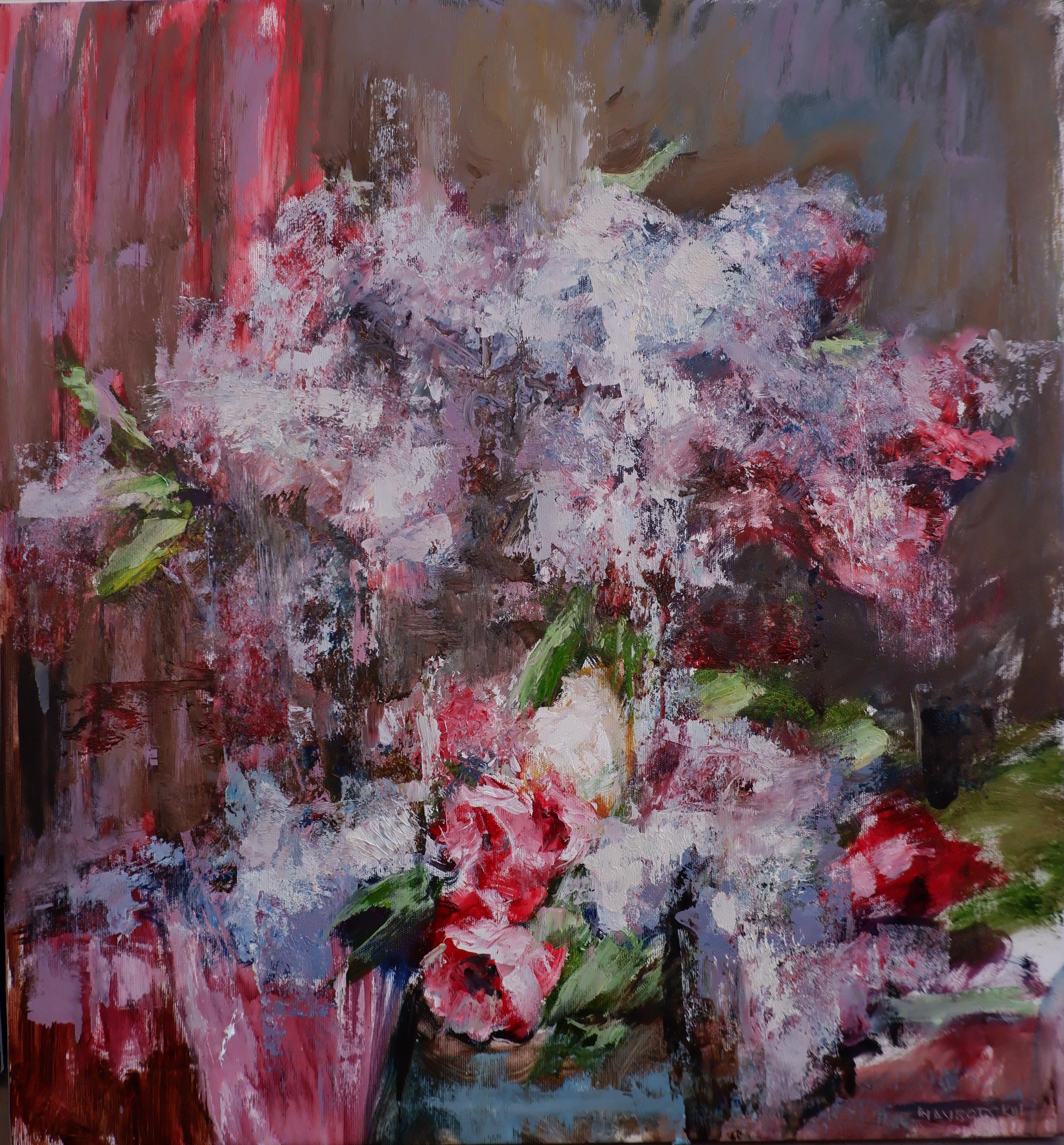 Bring a sense of emotion, movement, and blooming beauty into your space with this original oil painting titled “Orgován” (Lilac). This artwork captures a lush bouquet of lilacs in a bold, expressive style. Rich layers of textured brushstrokes blend soft whites, deep reds, and subtle greens, creating a dynamic composition that feels both vibrant and atmospheric. The background’s abstract tones enhance the depth and make the flowers appear alive and in motion. Perfect for modern, contemporary, or eclectic interiors, this piece becomes an instant focal point—adding warmth, artistic energy, and sophistication to any room.